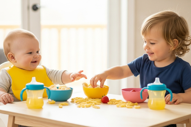 Meals at this stage are more about participation than perfection. Let your child try finger foods, watch your example, and play with their food. Messy eating is part of learning, and each attempt at self-feeding builds coordination, independence, and confidence.
